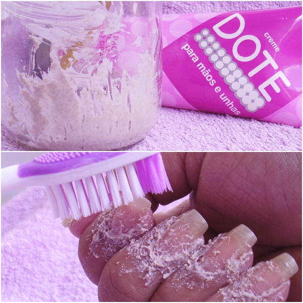 Ele é em esponja dentro de um potinho bem grandinho até. Contém queratina, D-Pantenol e melaleuca que ajudam a fortalecer as unhas.