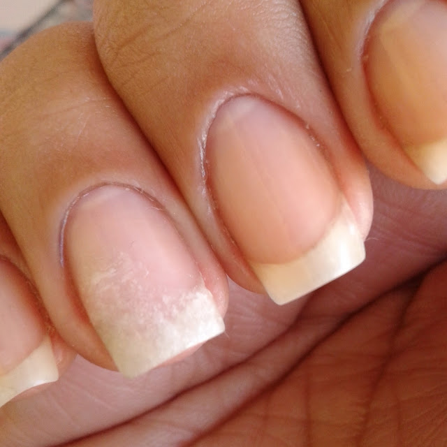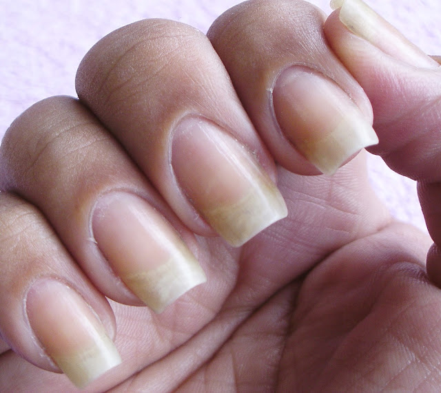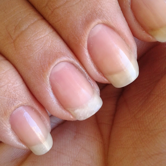 Depois de cutículas "retiradas", lavo as mãos e ficam assim... ainda com bastante pelezinhas ali pelos cantinhos. É nessa hora que uso o alicate pra cortar fora essas peles.