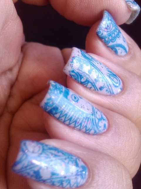 I love these kind of cream multi glitter polishes. It looks great with the stamping on too!